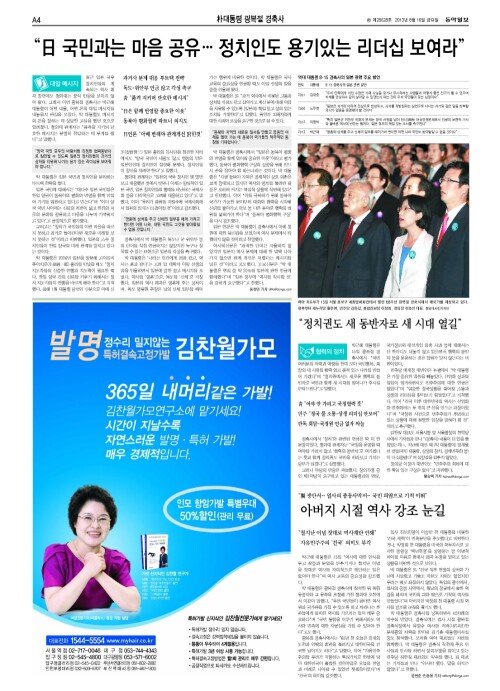 朴대통령 “日국민과는 마음 공유… 정치인도 용기있는 리더십…”
