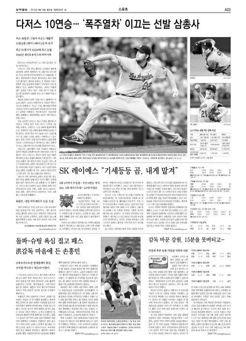 다저스 10연승… ‘폭주열차’ 이끄는 선발 삼총사