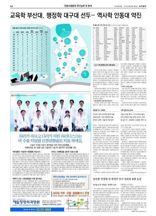 교육학 부산대, 행정학 대구대 선두… 역사학 안동대 약진