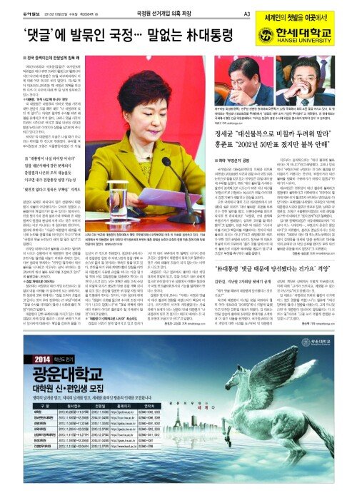 ‘댓글’에 발묶인 국정… 말없는 朴대통령