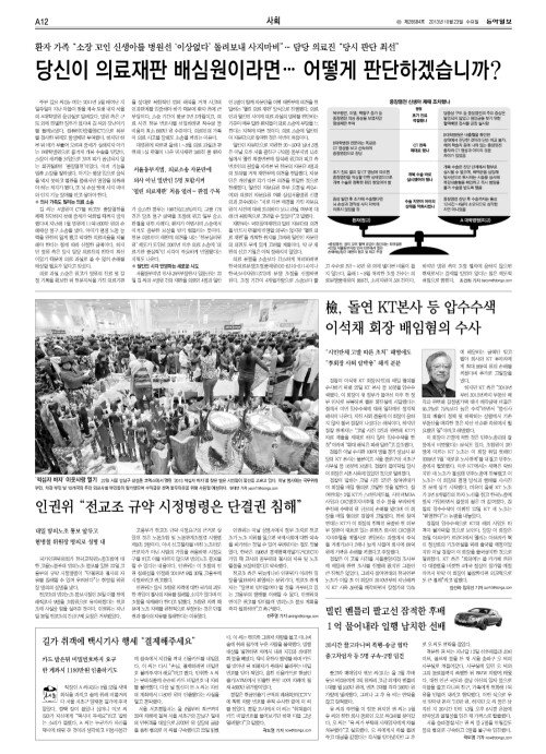 [사설]KT 싹쓸이 압수수색, 이석채 회장 나가라는 뜻인가