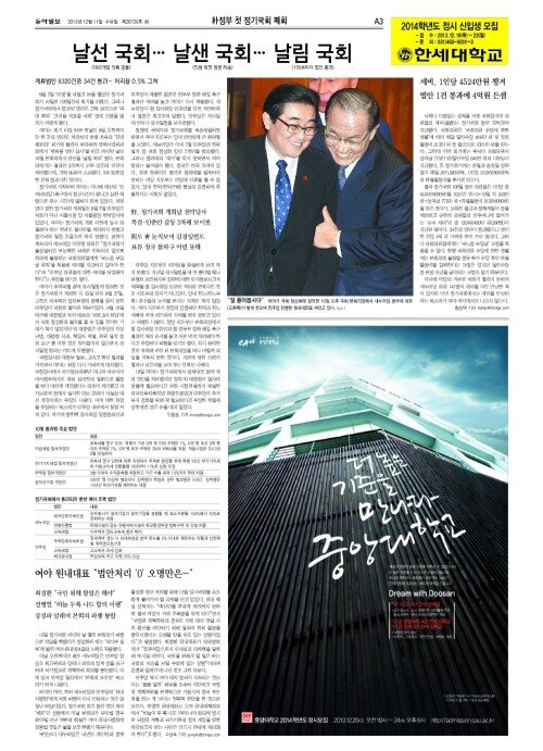 [朴정부 첫 정기국회 폐회]날선 국회… 날샌 국회…
