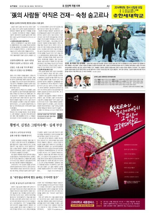 [北 장성택 처형 이후]‘張의 사람들’ 아직은 건재… 숙청 숨고르나