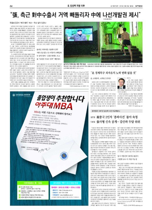 [北 장성택 처형 이후]“北 경제특구 외자유치 노력 변화 없을 것”