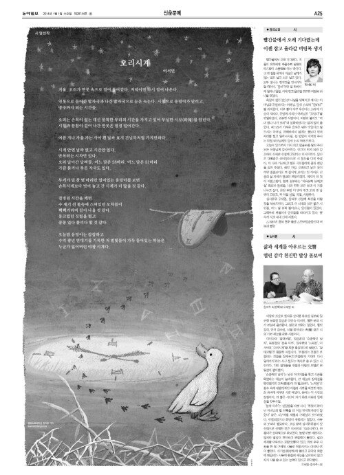 [동아일보 신춘문예 2014]시 당선작 ‘오리시계’