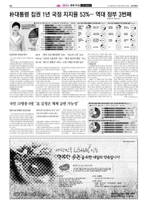[2014 새해 특집]朴대통령 집권 1년 국정 지지율 53%…