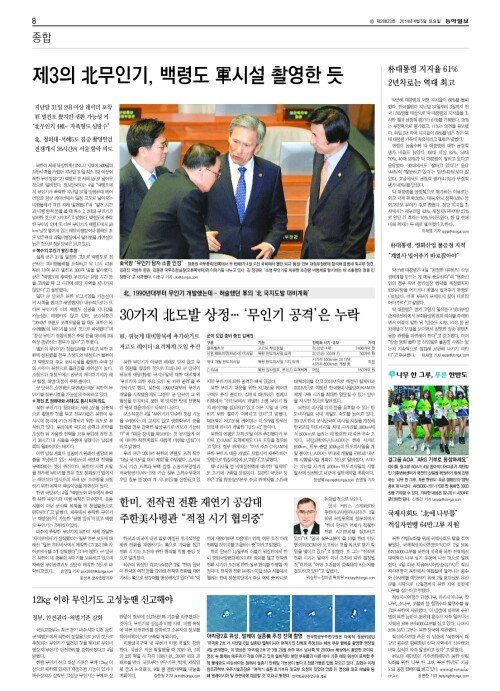 제3의 北무인기 백령도 軍시설 촬영한 듯