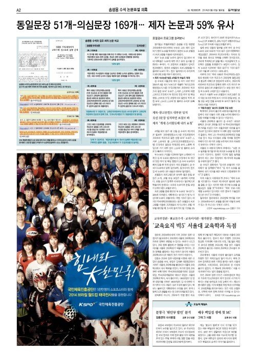 [송광용 수석 논문표절 의혹]동일문장 51개-의심문장…