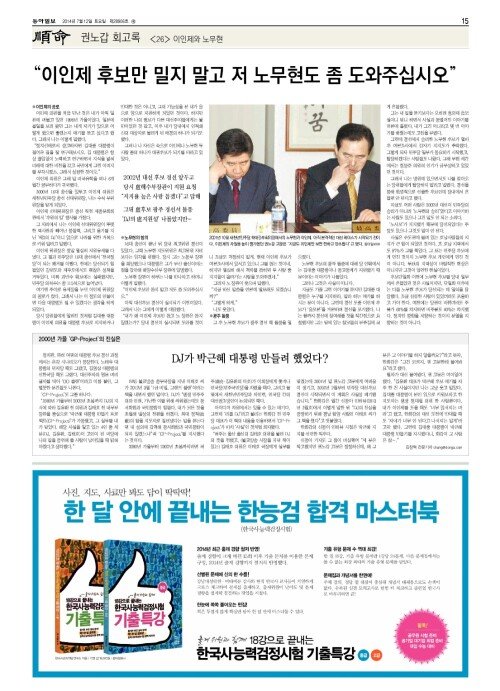 [順命]권노갑 회고록 〈26〉이인제와 노무현