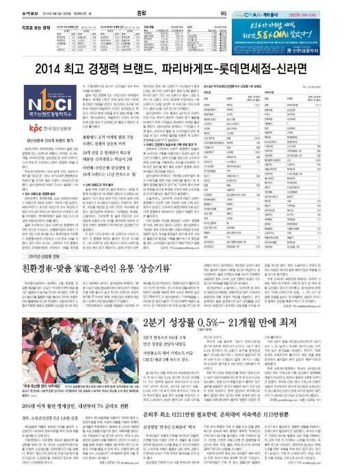 2014 최고 경쟁력 브랜드, 파리바게뜨-롯데면세점-신라면