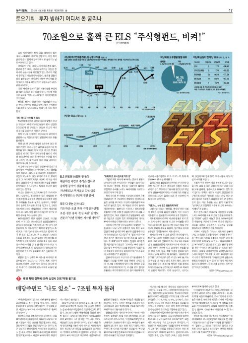 [토요기획]70조원으로 훌쩍 큰 ELS “주식형펀드, 비켜!”