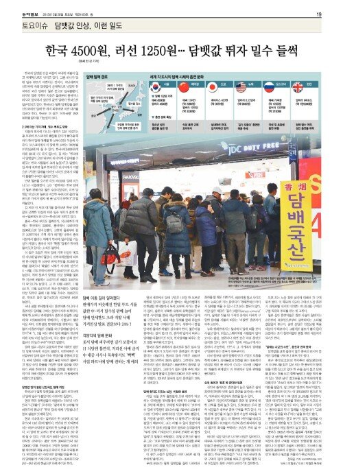 [토요이슈]한국 4500원, 러선 1250원… 담뱃값 뛰자 밀수 들썩
