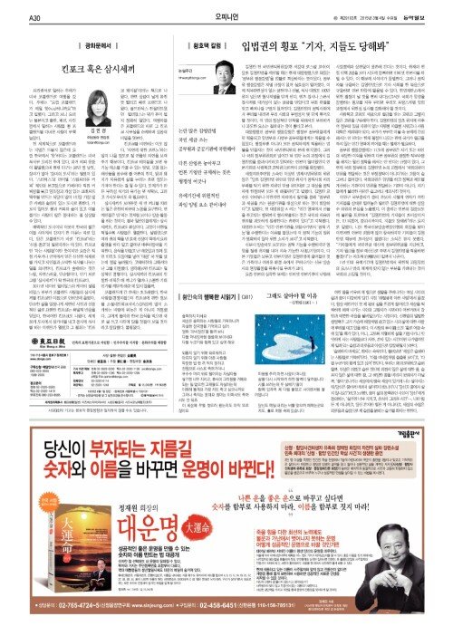 [황호택 칼럼]입법권의 횡포 “기자, 지들도 당해봐”