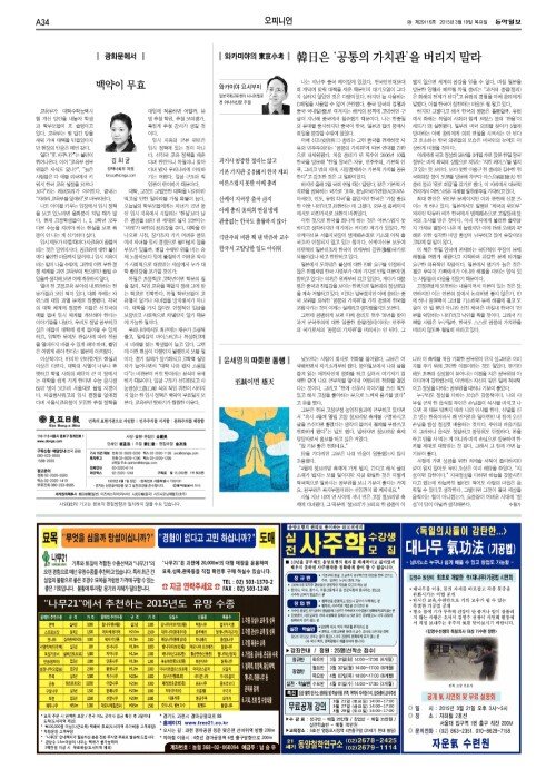 [와카미야의 東京小考]韓日은 ‘공통의 가치관’을 버리지 말라