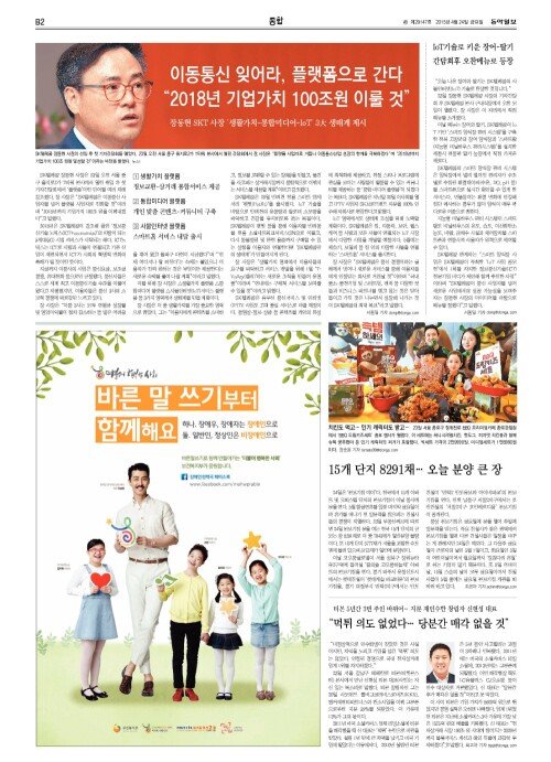 장동현 SKT 사장 “2018년 기업가치 100조원 이룰 것”