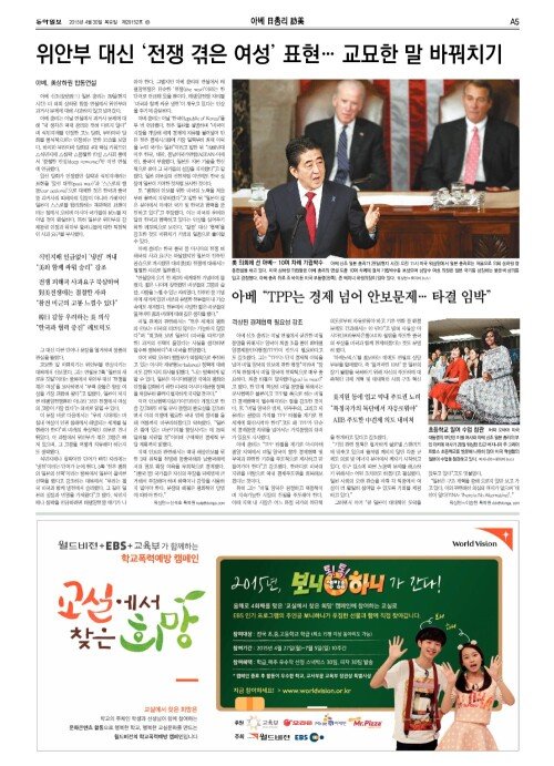 [사설]과거사 사죄 외면한 아베, 美의회 박수가 면죄부 될 수 없다