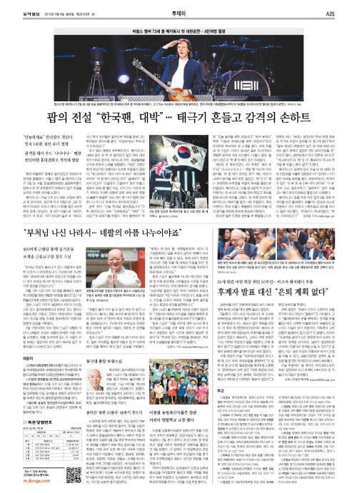팝의 전설 “한국팬, 대박”… 태극기 흔들고 감격의 손하트