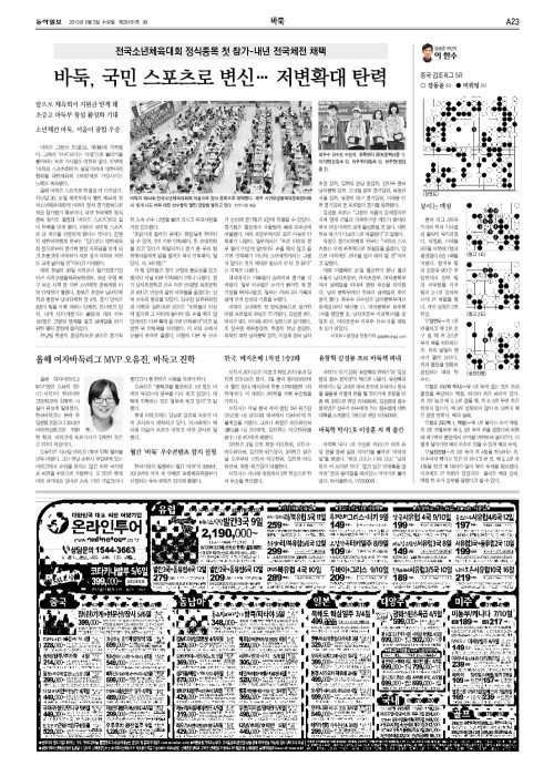 바둑, 국민 스포츠로 변신… 저변확대 탄력