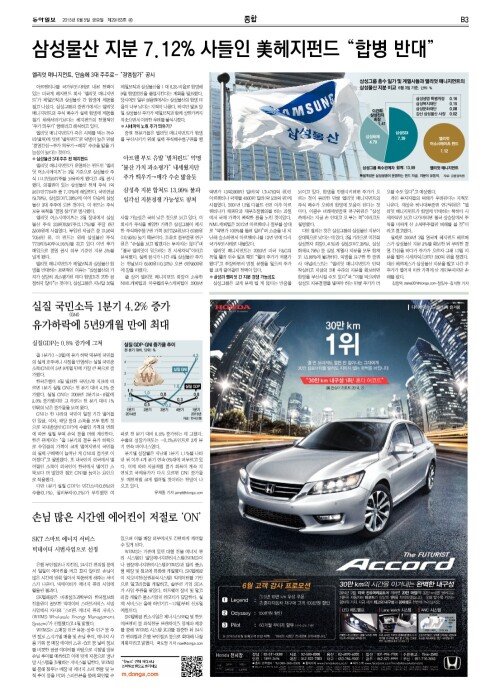 삼성물산 지분 7.12% 사들인 美헤지펀드 “합병 반대”
