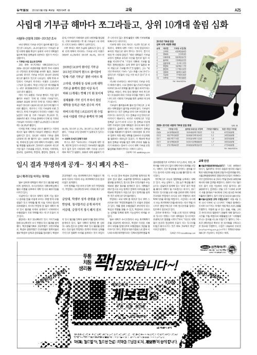 사립대 기부금 해마다 쪼그라들고, 상위 10개대 쏠림 심화