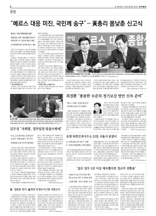 “메르스 대응 미진, 국민께 송구”… 黃총리 몸낮춘 신고식