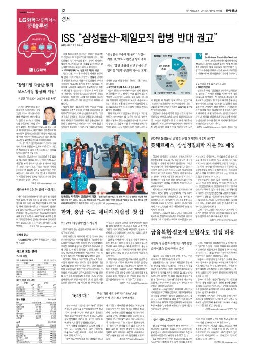 ISS “삼성물산-제일모직 합병 반대 권고”
