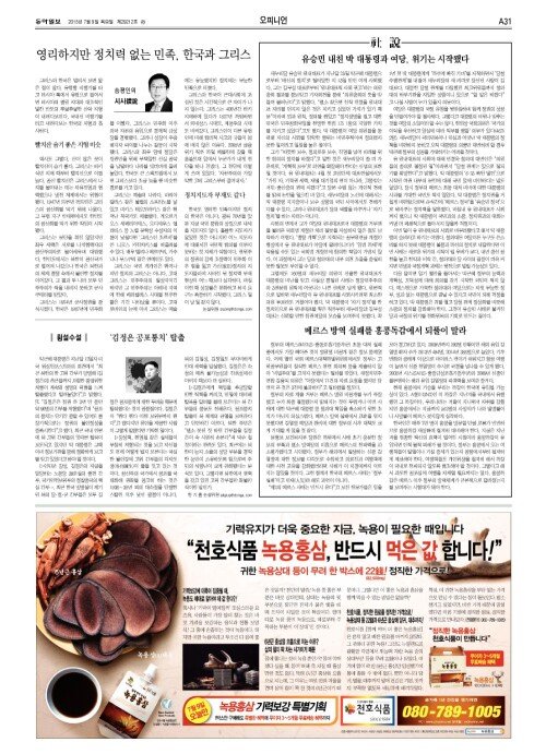 [송평인의 시사讀說]영리하지만 정치력 없는 민족, 한국과 그리스