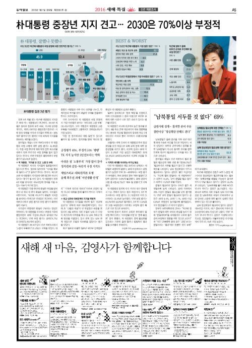 朴대통령 중장년 지지 견고… 2030은 70%이상 부정적