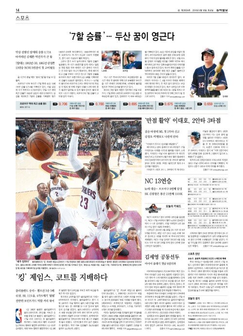 A섹션 14면 스포츠