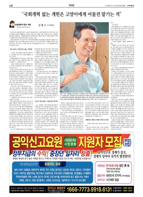 [논설위원이 만난 사람/허문명]“국회개혁 없는 개헌은 고양이에게 어물전 맡기는 격”