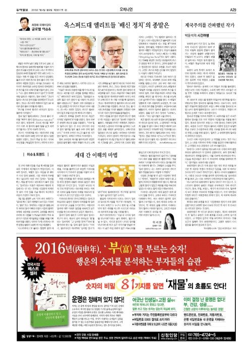 [최영해 국제부장의 글로벌 이슈&]옥스퍼드대 엘리트들 ‘배신 정치’의 종말은