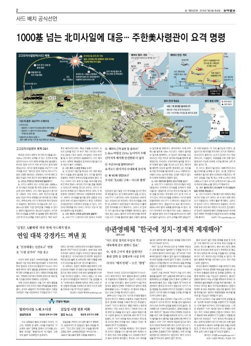 한미 ‘사드배치’ 공식선언… 軍 “후보지 확정”