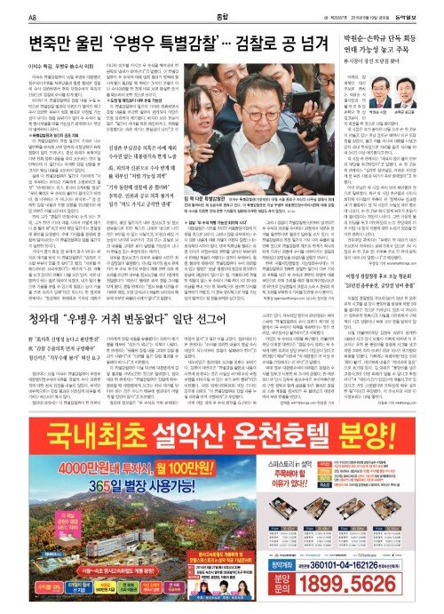 [사설]우병우 민정수석, 즉각 사퇴하고 검찰 수사 받아야