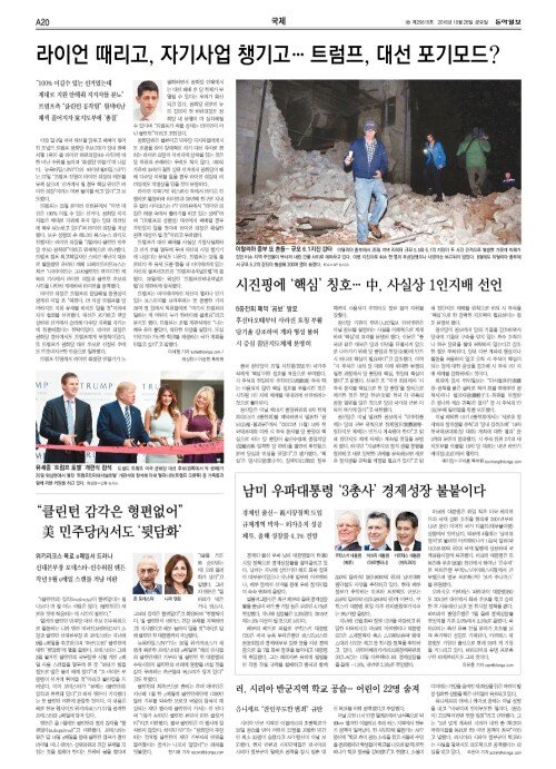 [함께읽는 동아일보]中 시진핑 1인 체제에 능동적으로 대응하길 外