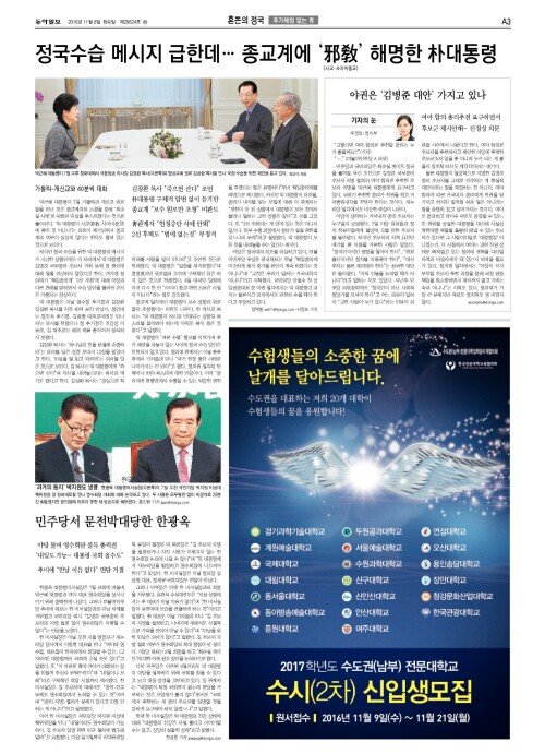 정국수습 메시지 급한데… 종교계에 ‘邪敎’ 해명한 朴대통령
