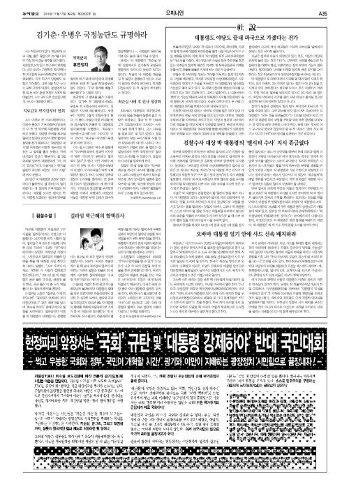 [열린 시선/양승태]‘대통령 불신’ 시국, 헌법대로 풀어라