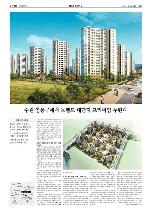 [화제의 분양현장]수원 영통구에서 브랜드 대단지 프리미엄 누린다