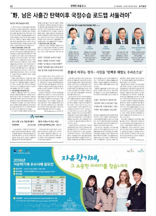 “野, 남은 사흘간 탄핵이후 국정수습 로드맵 서둘러야”