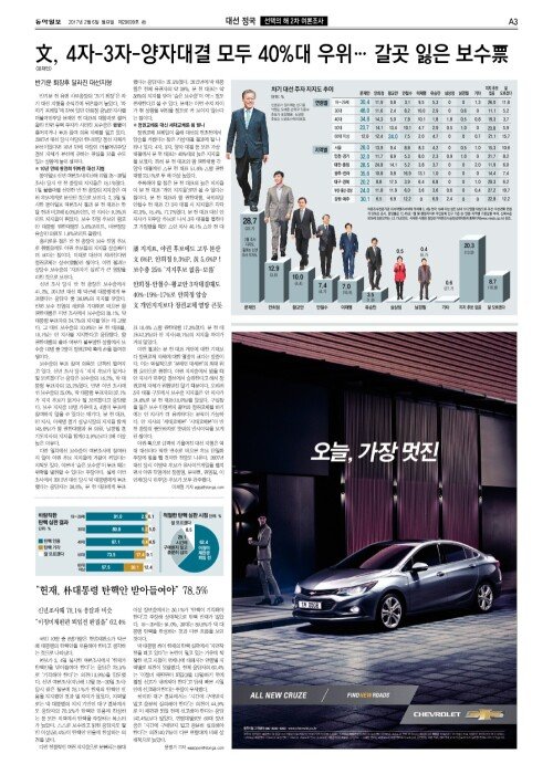 문재인, 4자-3자-양자대결 모두 40%대 우위… 갈곳 잃은 보수票