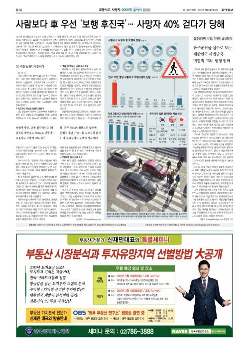 사람보다 車 우선 ‘보행 후진국’… 사망자 40% 걷다가 당해