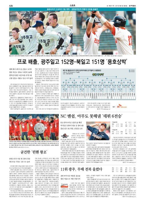 프로 배출, 광주일고 152명-북일고 151명 ‘용호상박’