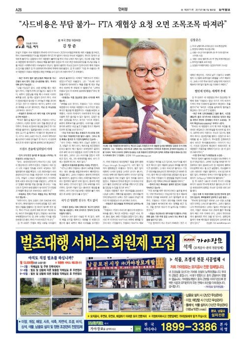 [전승훈 기자의 지금, 여기]“사드비용은 부담 불가… FTA 재협상 요청 오면…”