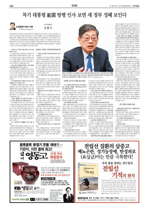 [논설위원이 만난 사람/최영해]차기 대통령 組閣 탕평 인사 보면 새 정부…