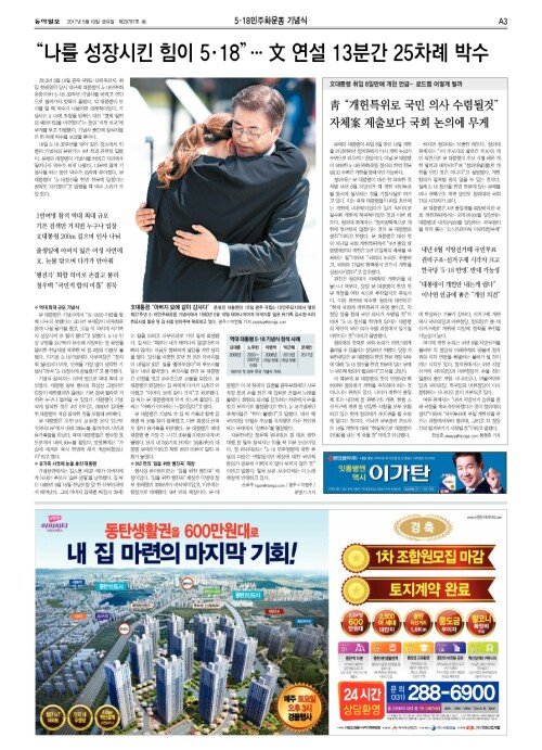 “나를 성장시킨 힘이 5·18”… 문재인 연설 13분간 25차례 박수