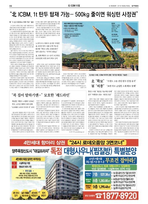 “北 ICBM, 1t 탄두 탑재 가능… 500kg 줄이면 워싱턴 사정권”