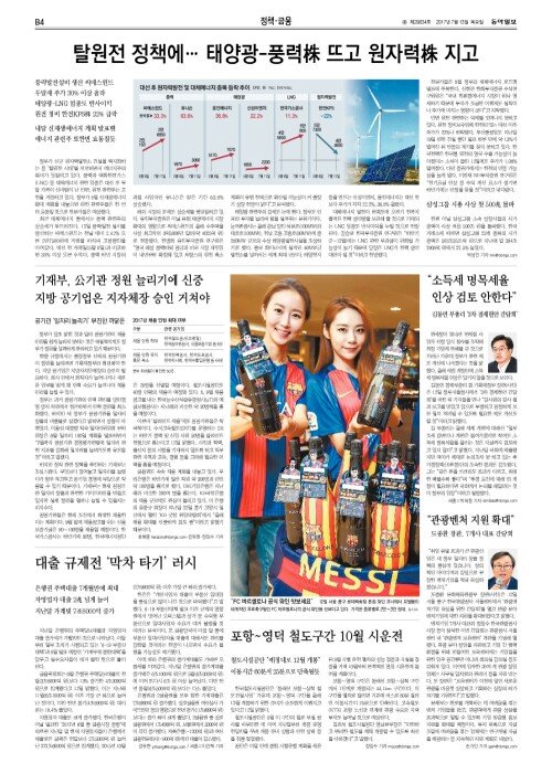 탈원전 정책에… 태양광-풍력株 뜨고 원자력株 지고