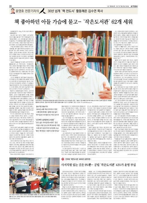[윤영호 전문기자의 人]김수연 목사, 책 좋아하던 아들 가슴에 묻고… ‘작은도서관’ 62개 세워
