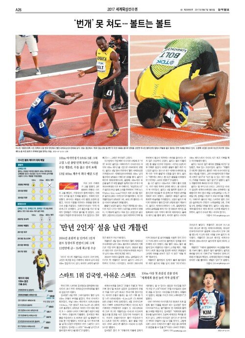 [2017 세계육상선수권]‘번개’ 못 쳐도… 볼트는 볼트