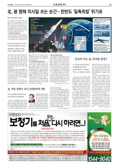 北, 괌 향해 미사일 쏘는 순간… 한반도 ‘일촉즉발’ 위기로