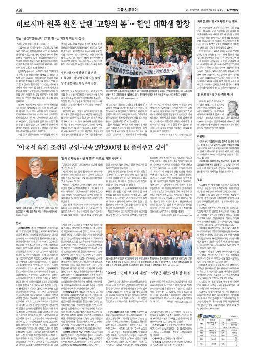 히로시마 원폭 원혼 달랜 ‘고향의 봄’… 한일 대학생 합창